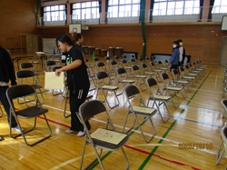 6年生が、机やいすを並べたり、雑巾がけをしたり、
