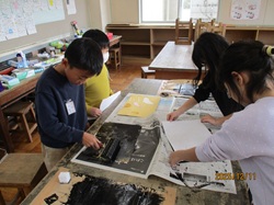 紙版画 2025年12月11日 最終更新日時 : 2025年12月11日 kumagaya_author 3年生が、「いろいろうつして」の学習で、紙版画に挑戦しました。 いろいろな模様の紙や、毛糸、段ボールで生き物や動物を表現し版画にしました。 乾いたら裏から絵具で色を付けていこうと思います。 どんな作品になるのか楽しみです。