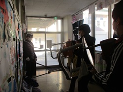 子供たちは、不審者が教室に侵入できないように