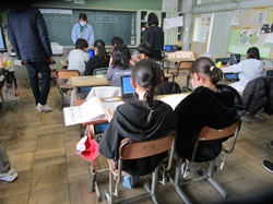 オンラインのTeamsを使った全校朝会が行われました。 子どもたちは、各学級の電子黒板に映し出された表彰の様子や校長先生のお話を、よい姿勢で見聞きすることができしました。
